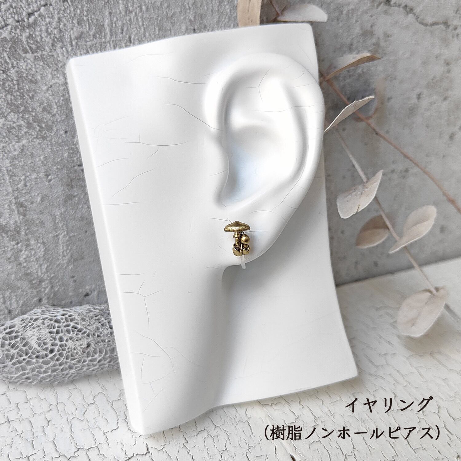 従来のバネやネジで調整する金属製イヤリングと比べると、遠目ではピアスのように見え、軽くて痛みが出にくいのが特徴です。その分着けていることを忘れやすいため、紛失にはご注意下さい。